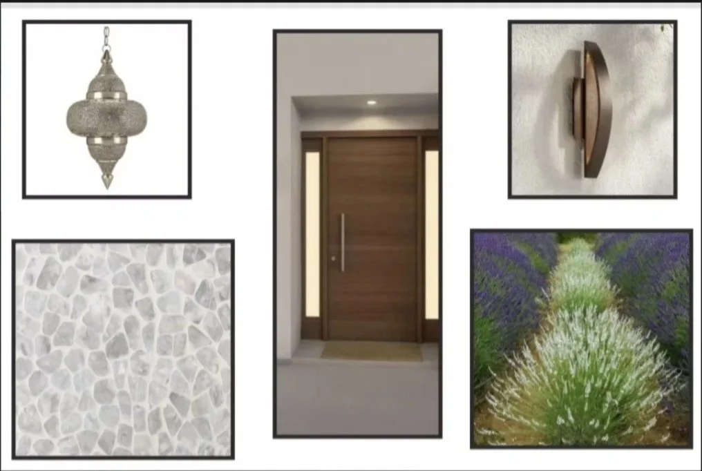 The moment you arrive onto the property peace will overtake you with the scent of lavender that frames the property, a teak front door inspired by buddha temples that is framed with a senso concrete archway that hangs with a Moroccan oil lamp and complimentary copper sconces.
