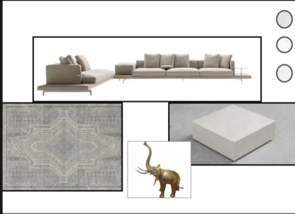 The intention with the living room is to be simple but bold. the simplicity comes with minimal furniture and consistent materials from the flooring to the fireplace then a custom coffee table made from the same casted concrete as the flooring. the statement is a oversized vase and custom pieces that the client obtained through travel. the space is truly about embracing minimalism by appreciating rare selections and supporting those items with a neutral background. this ensures a calming atmosphere.